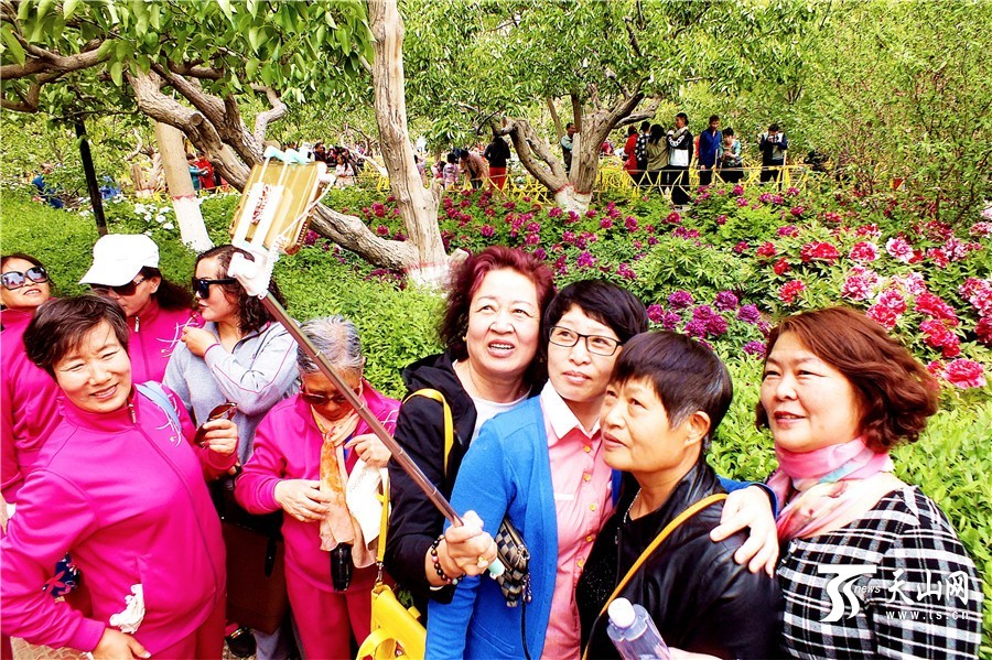 4月23日,新疆库尔勒市孔雀河畔梨香园里的杏花、桃花、迎春花、梨花芳菲刚落,素有“富贵花”之称的牡丹又进入了盛花期。艳冠群芳的牡丹争艳斗丽,姹紫嫣红,雍容华贵,美轮美奂,如同一幅美妙娇丽的画卷,把沙漠边城库尔勒春季赏花游热潮推向顶峰,市民春潮般前呼后拥奔进梨香园,去感受梨香园里正在上演的最美春天。