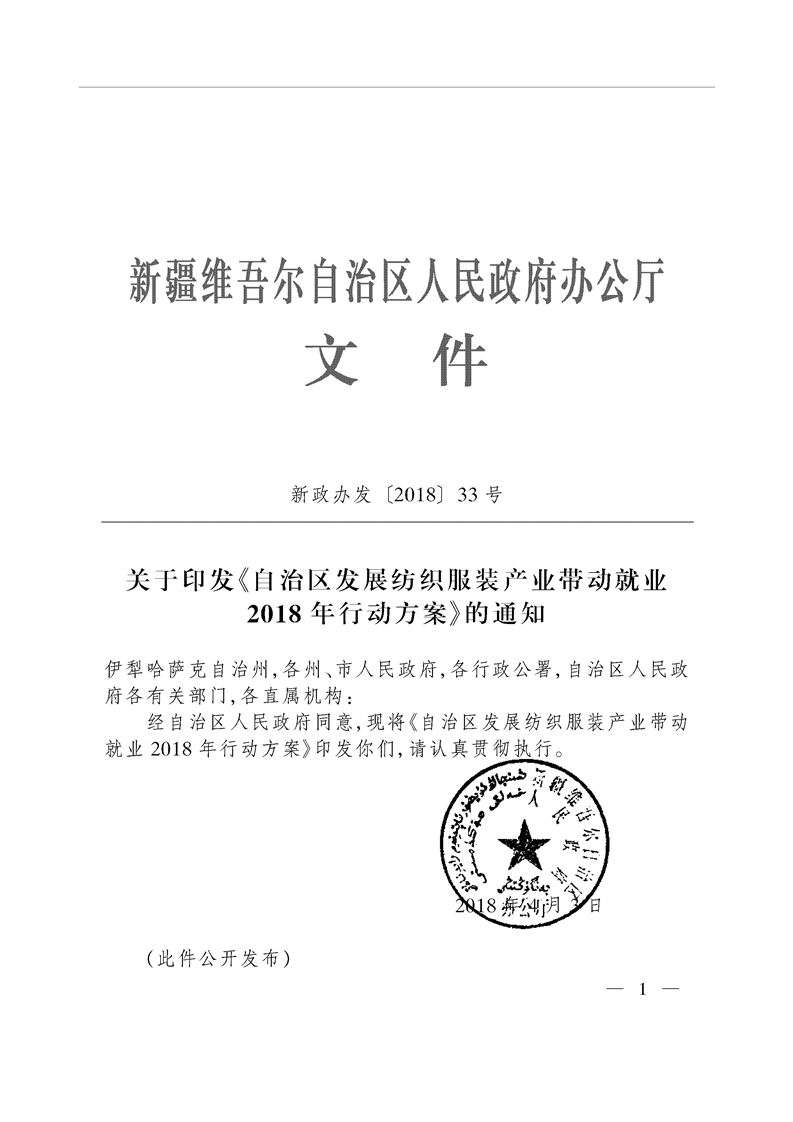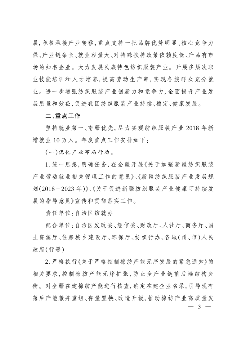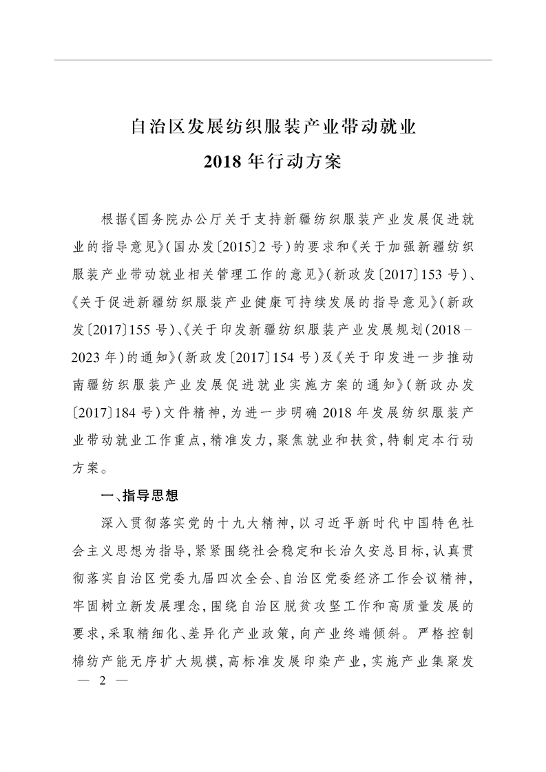 关于印发自治区发展纺织服装产业带动就业2018年行动方案的通知