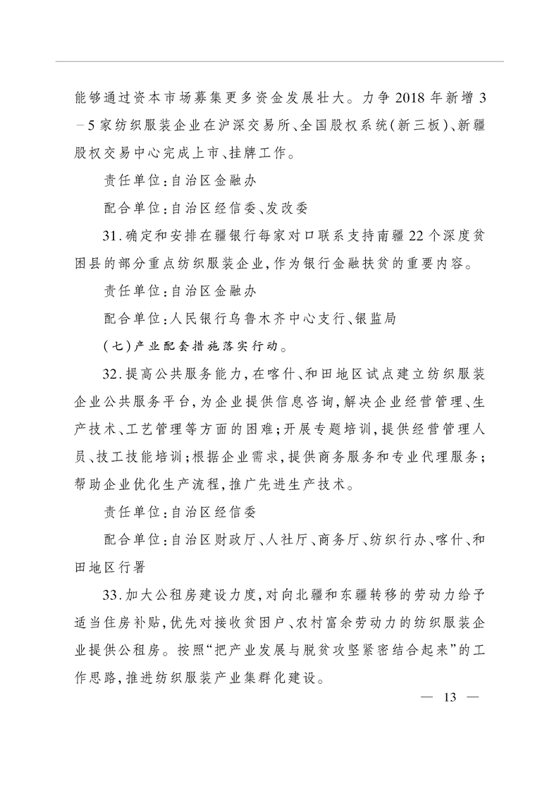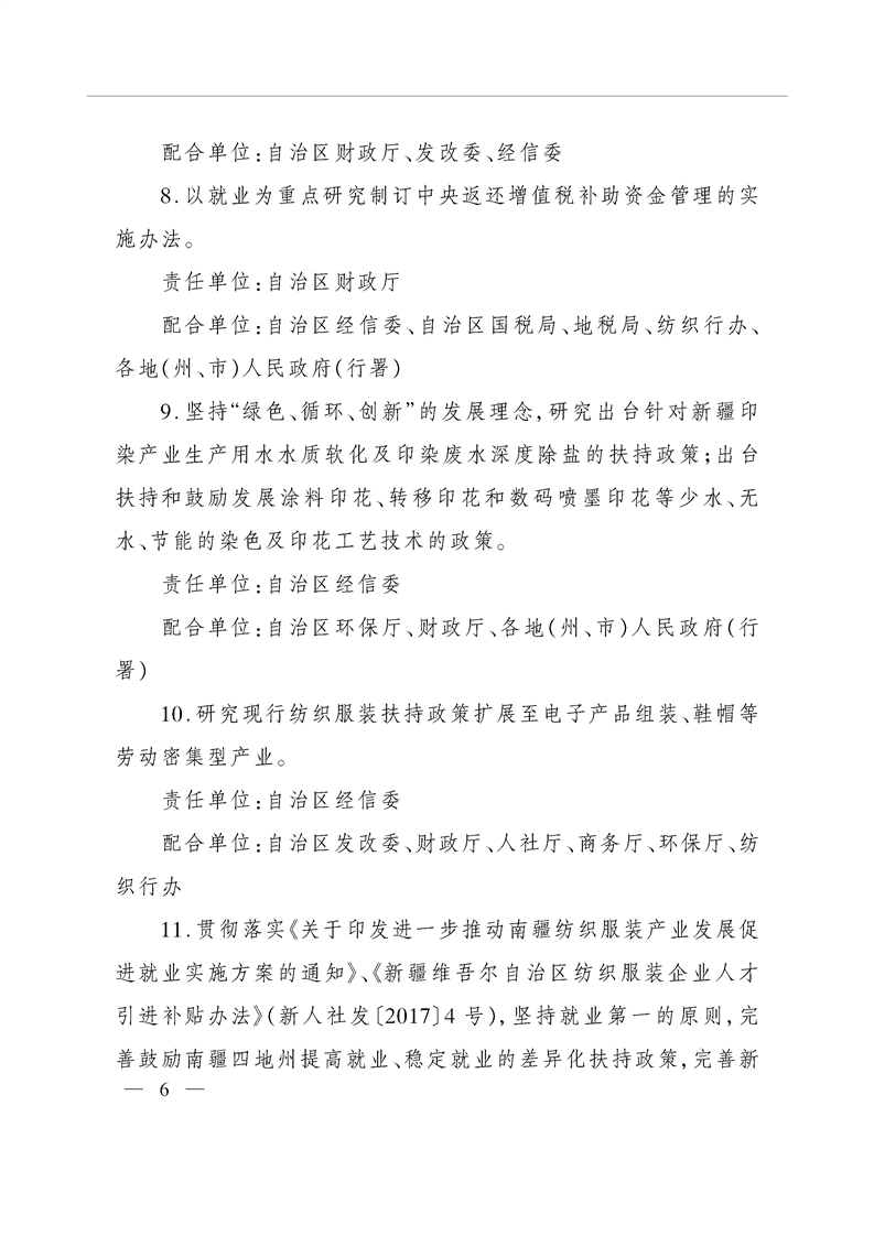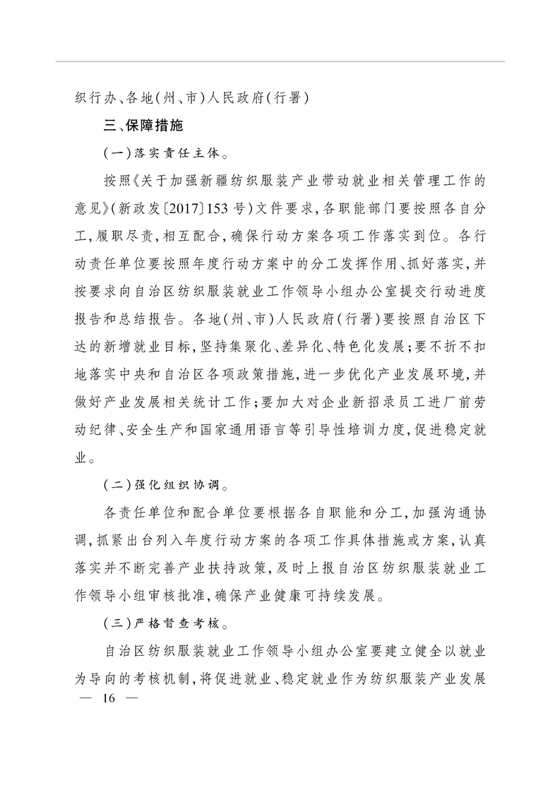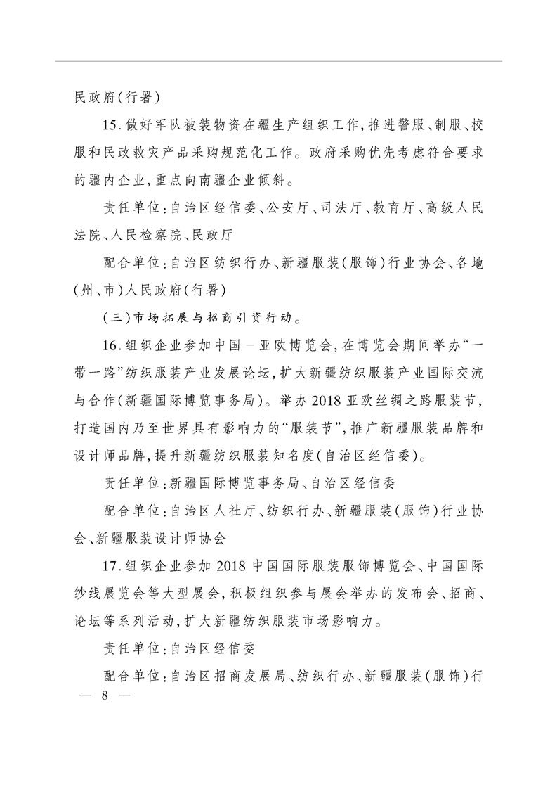 关于印发自治区发展纺织服装产业带动就业2018年行动方案的通知